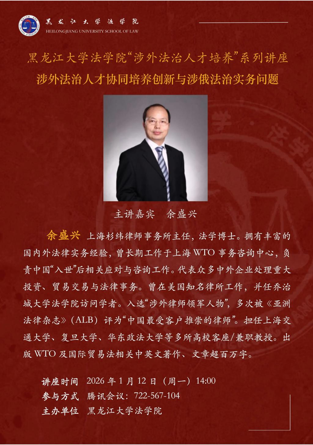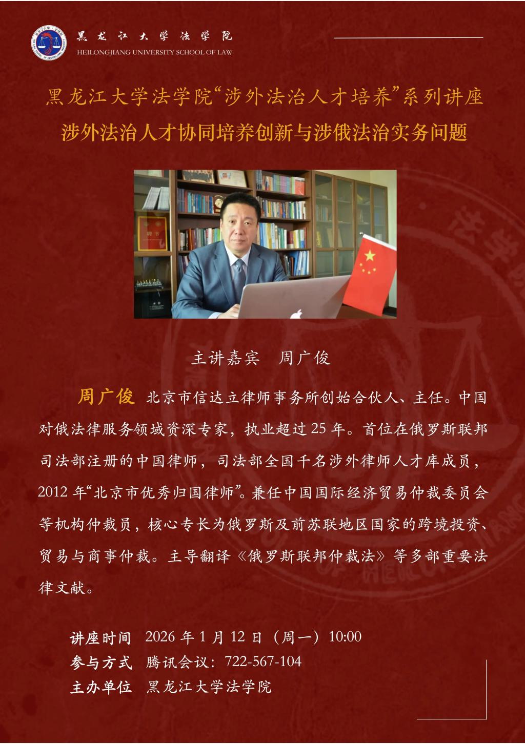 讲座预告 | “涉外法治人才培养”系列讲座:涉外法治人才协同培养创新与涉俄法治实务问题