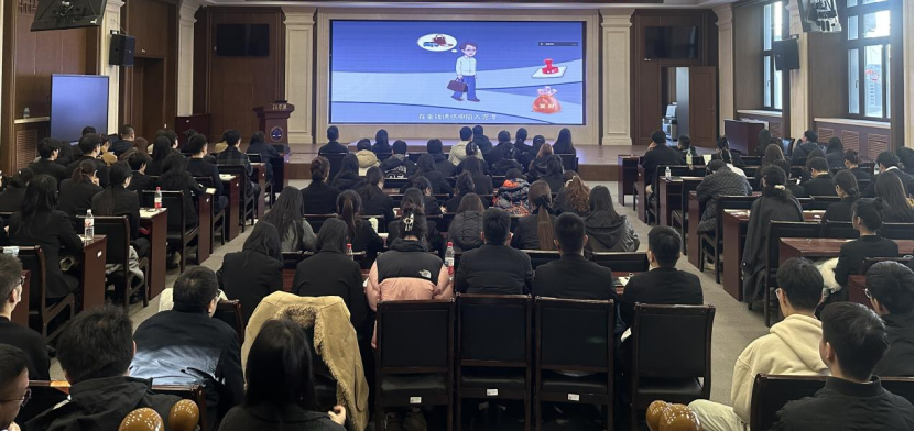 10月22日,法学院组织全体师生党员在模拟法庭集中观看中央纪委国家监委网站“明纪释法”专栏《严格教育管理监督 拧紧年轻干部“纪律弦”》专题视频,以沉浸式学习推动纪律教育与警示教育深度融合。