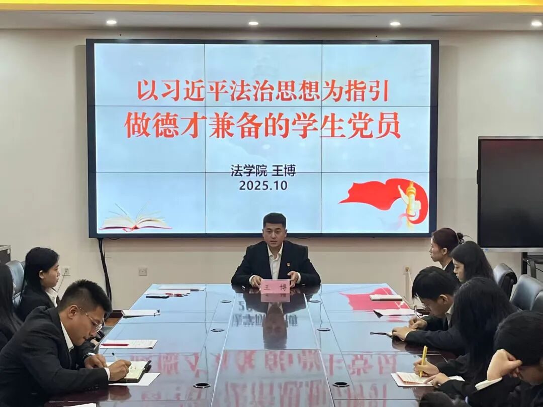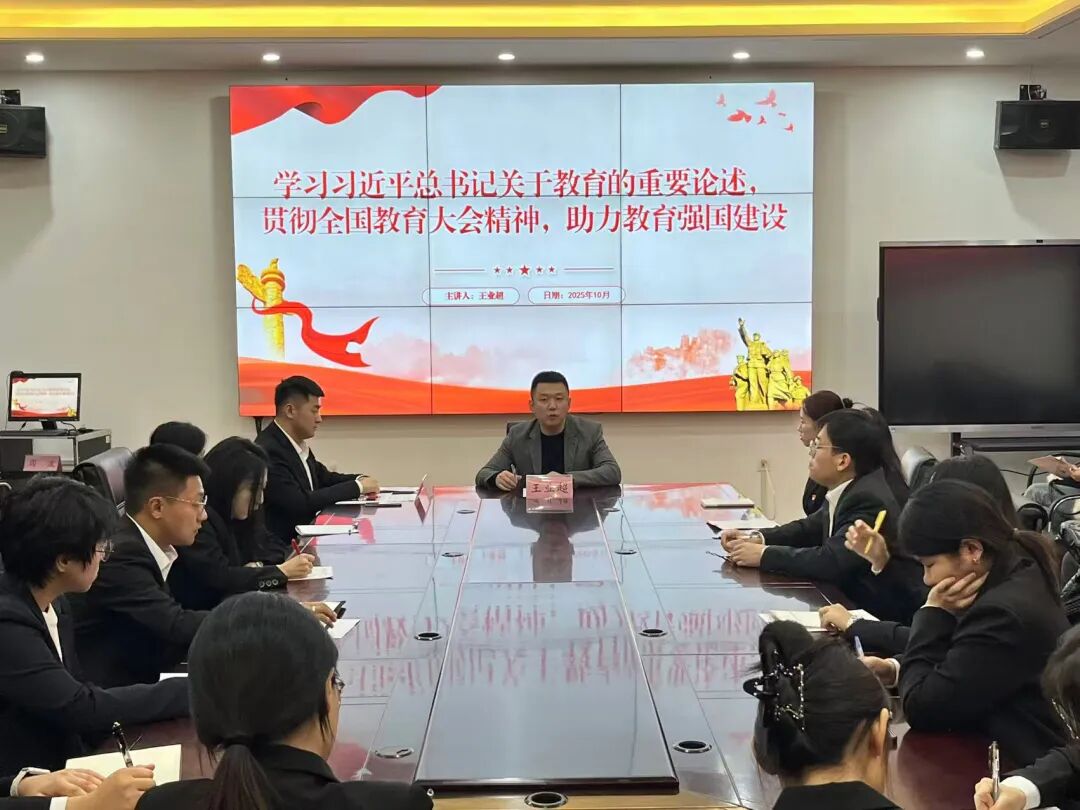 法学院团委书记王业超老师带领同学们深入学习习近平总书记关于教育的重要论述、全国教育大会精神和《教育强国建设规划纲要(2024-2035年)》精神。他强调要学好政治理论,筑牢理想信念之基,并勉励学生党员要将个人梦想融入国家发展伟业,为建设教育强国、实现中华民族伟大复兴贡献力量。