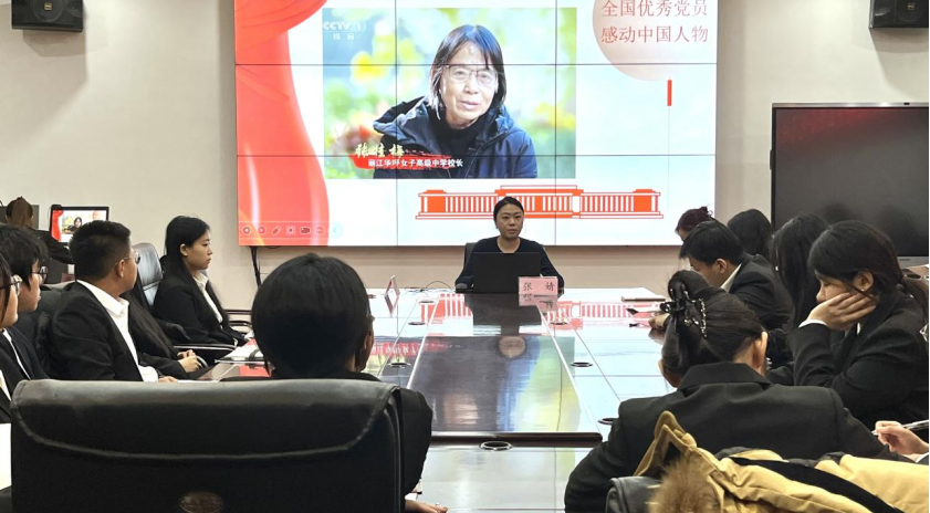 法学院团委副书记张婧老师以“学习身边榜样,以担当践行初心使命”为题,通过介绍“时代楷模”张桂梅的先进事迹,让同学们深切感受到以张桂梅同志为代表的优秀共产党员坚守初心、对党忠诚的崇高品格,执着奋斗、无私奉献的至诚情怀,并鼓励学生党员们向张桂梅同志学习,做新时代“四有”好青年。