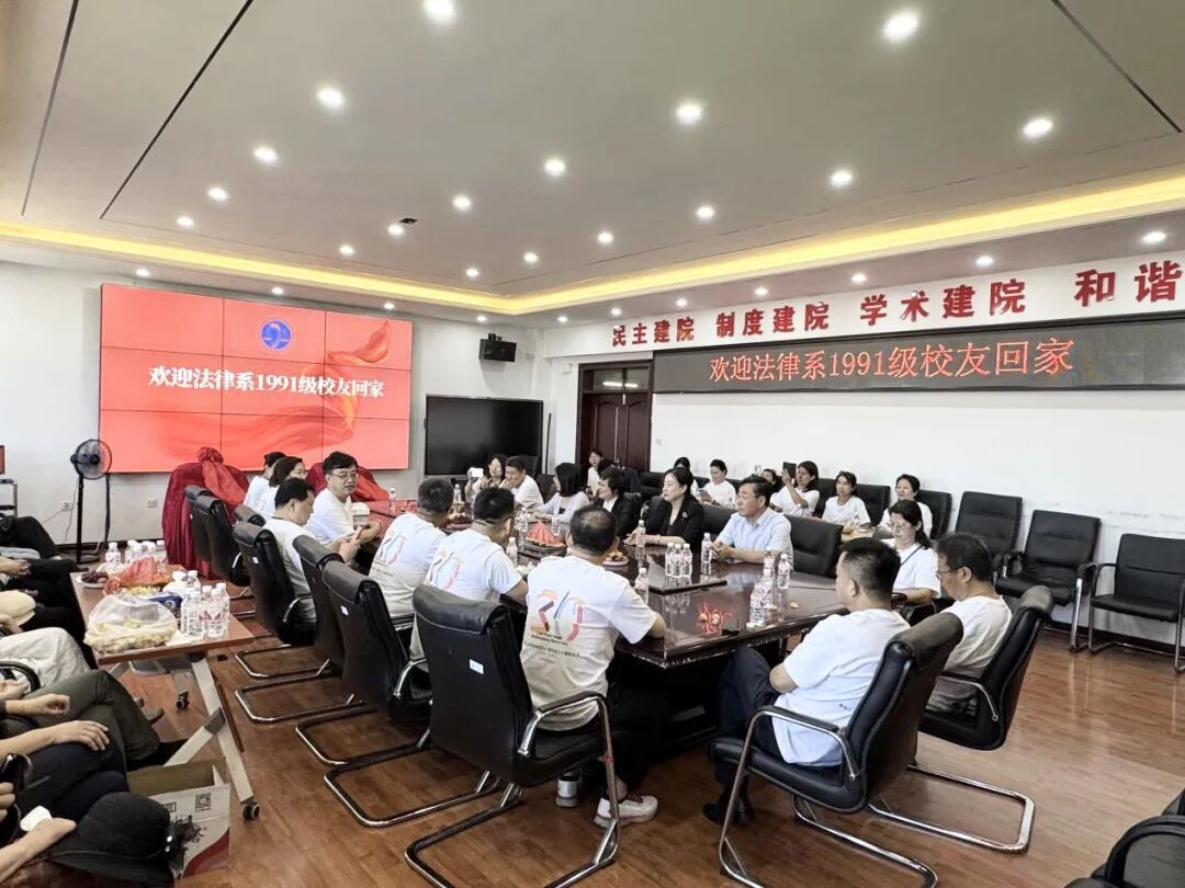 9月6日,黑龙江大学91级法律系校友从四面八方重返阔别多年的母校,在法学院会议室举行了一场温馨而隆重的座谈会,师生欢聚一堂,畅叙情谊,共话未来。法学院领导班子参加座谈,捐赠仪式由法学院党委副书记董捷主持。