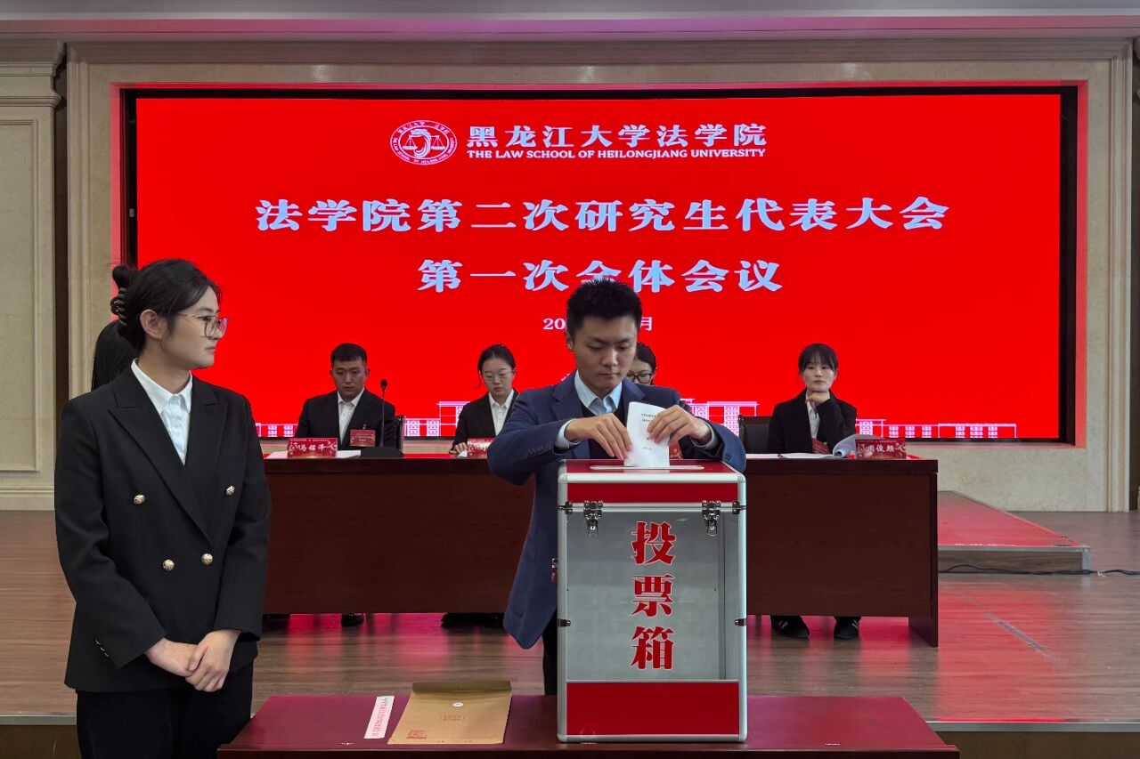 大会依次听取、审议、通过了《黑龙江大学法学院第二次研究生代表大会代表资格审查情况的报告》、《法学院第一届研究生会委员会工作报告》、《黑龙江大学法学院第二届研究生会委员会选举、主席团选举监票小组名单(草案)》,并选举产生了黑龙江大学法学院第二届研究生会委员会。