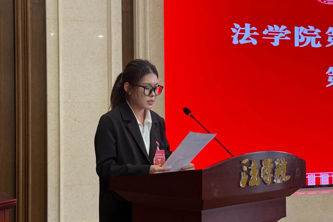 周俊颜宣读《通过<黑龙江大学法学院研究生会章程(草案)>的决议》