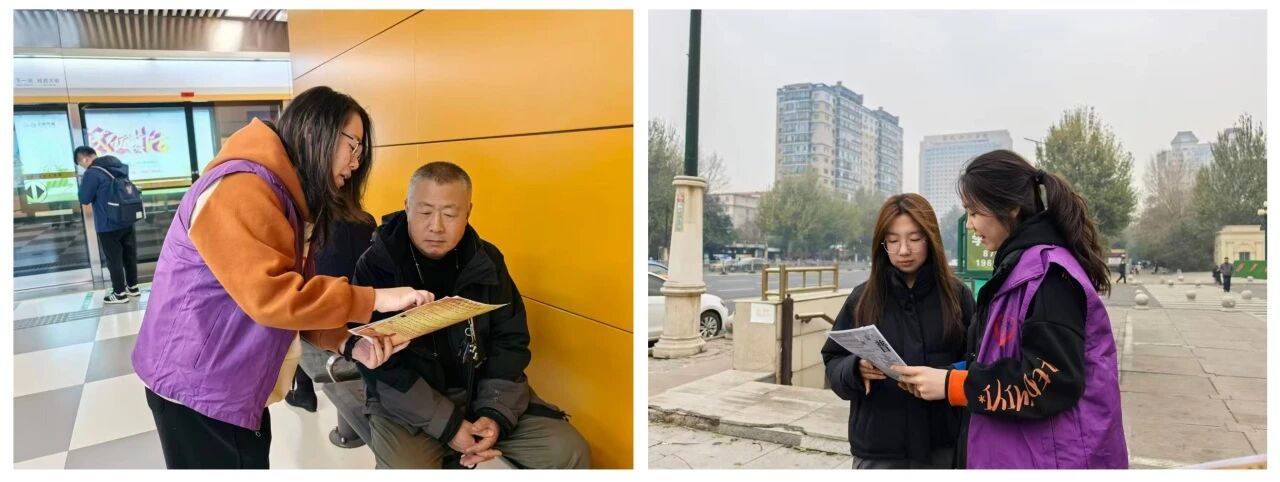 活动伊始,志愿者们在地铁站门口为往来行人发放普法宣传单。他们结合了校园生活场景与社会实际案例,用通俗易懂的语言讲解了《民法典》中的实用条款规定,将法律知识转化为了实用的生活指南,志愿者们耐心讲解的身影,成为了地铁站门口一道法治亮色。在地铁站候车区,志愿者们灵活地调整了讲解方式,他们通过提炼有关“合同纠纷”和“侵权责任”等与工作密切相关的核心法律知识向群众讲解。