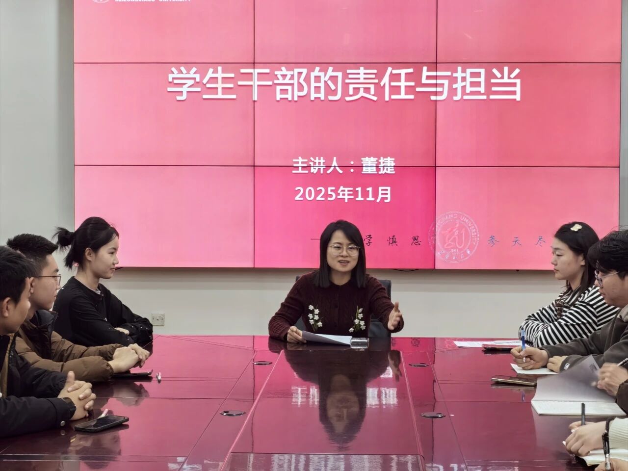 法学院党委副书记董捷以《学生干部的责任与担当》为题进行专题培训,要求全体学生干部明确角色定位,清晰自身“服务者、桥梁者、引领者”的三重角色,以服务同学为核心,做好师生沟通纽带;锤炼本领,提升效能,既要强化政治觉悟和理论素养,也要提升组织协调、沟通表达、解决问题的能力;坚守原则,凝聚合力,恪守公平公正、主动作为、团结协作、反思改进的原则,增强班级凝聚力。