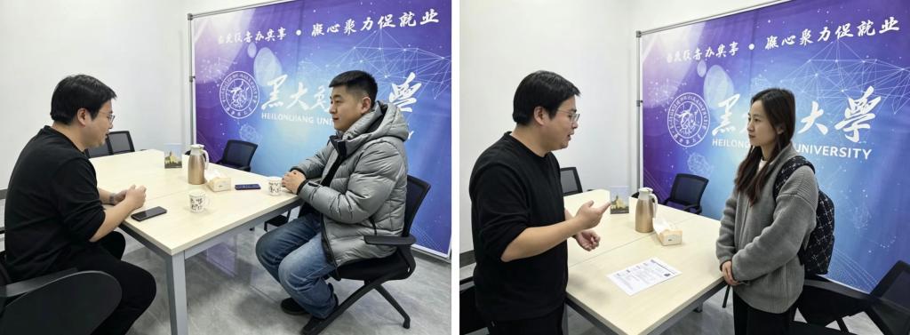 为进一步深化校企合作,拓宽法学毕业生就业渠道,近日,我院在大学生活动中心举办“企业进校园”访企拓岗交流座谈会。中国人民财产保险股份有限公司黑龙江省分公司、瑞众人寿保险有限责任公司黑龙江分公司、哈尔滨市智航教育咨询有限公司、浙江吉利控股集团有限公司应邀走进我校,法学院党委副书记董捷、2026届硕士毕业生辅导员王博参加活动。