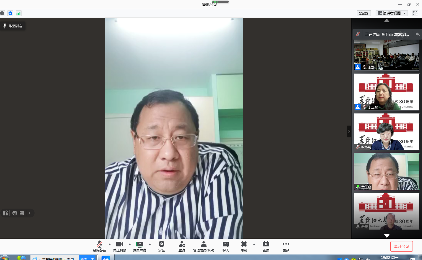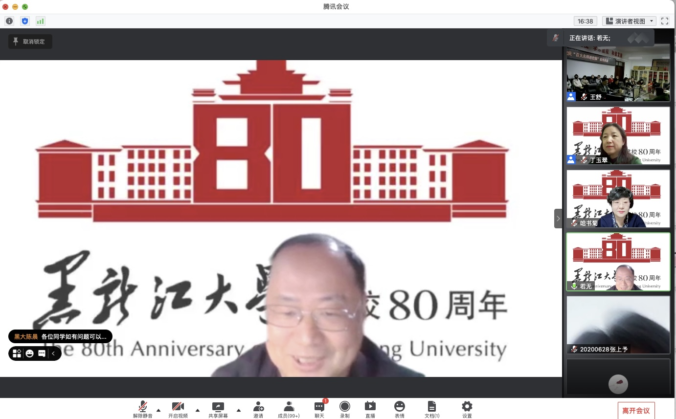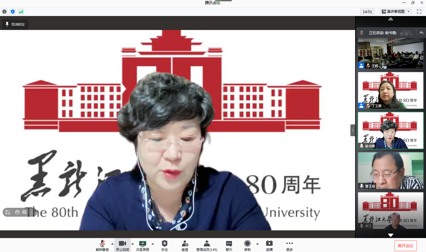 2021年4月12日,庆祝黑龙江大学建校八十周年暨法学院创办四十周年系列活动之百大名家进校园第59期于黑龙江大学汇文楼835室举行。此次云讲座的主讲人是西北政法大学刑事法学院院长、博士生导师冯卫国教授,主题为“社区矫正法的基本理念与制度创新”。讲座由我院院长哈书菊教授与董玉庭教授主持,我院副院长丁玉翠副教授以及线上线下百余名研究生、本科生聆听了此次讲座。