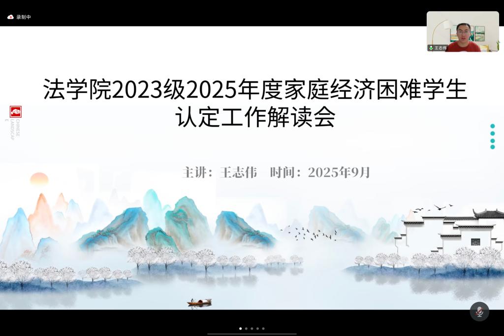 为落实《学生工作部:关于开展2025年度家庭经济困难学生认定工作的通知》的相关要求,切实掌握家庭经济困难学生的基本情况,保证国家和学校各项资助政策和措施真正落到实处,有效实现精准资助。法学院于近日启动了家庭经济困难学生认定工作。