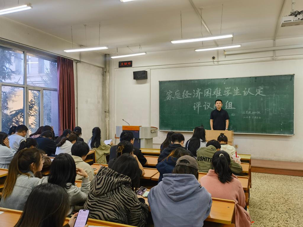 法学院各年级辅导员分别召开2025年家庭经济困难学生认定工作专项年级大会,向全体同学详细讲解了本年度家庭经济困难学生认定工作的申请方式、认定范围、困难类型、认定依据等内容。辅导员们希望全体同学严肃认定工作态度,提高思想认识,并要求全体参与认定的同学要诚实守信。在认定工作中,法学院秉持公平、公正、公开的原则,成立认定评议小组、学生互评小组、寝室评议小组三类评议小组,落实自评打分、互评打分、评议小组打分及寝室评议小组打分的四级打分体系,评议过程受全体同学监督。