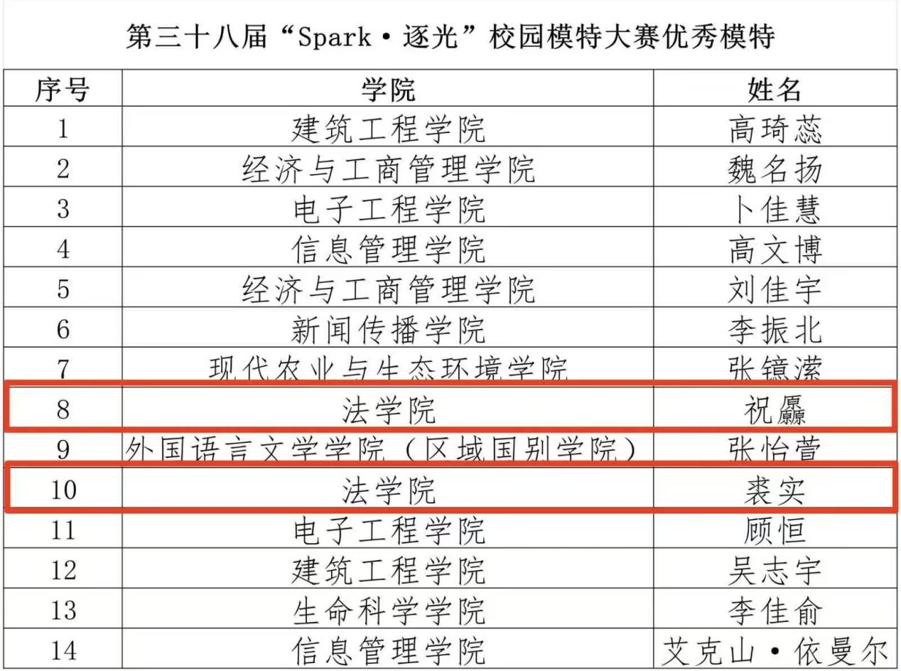 为进一步促进校园文化繁荣发展,提高学生审美素养,激发学生的艺术热爱,展现美育教学成果,我校于第 38 届校园文化艺术节期间举办“Spark 逐光” 2025 年校园模特大赛。近日,校园模特大赛圆满落幕。经初赛、决赛的激烈角逐。我院学子凭借扎实的台风功底、独特的审美表达与饱满的青春活力,在众多参赛者中脱颖而出,斩获佳绩。男子组蒋卓希荣获季军;女子组王文君荣获十佳模特奖,祝厵、裘实荣获“优秀模特”荣誉称号。