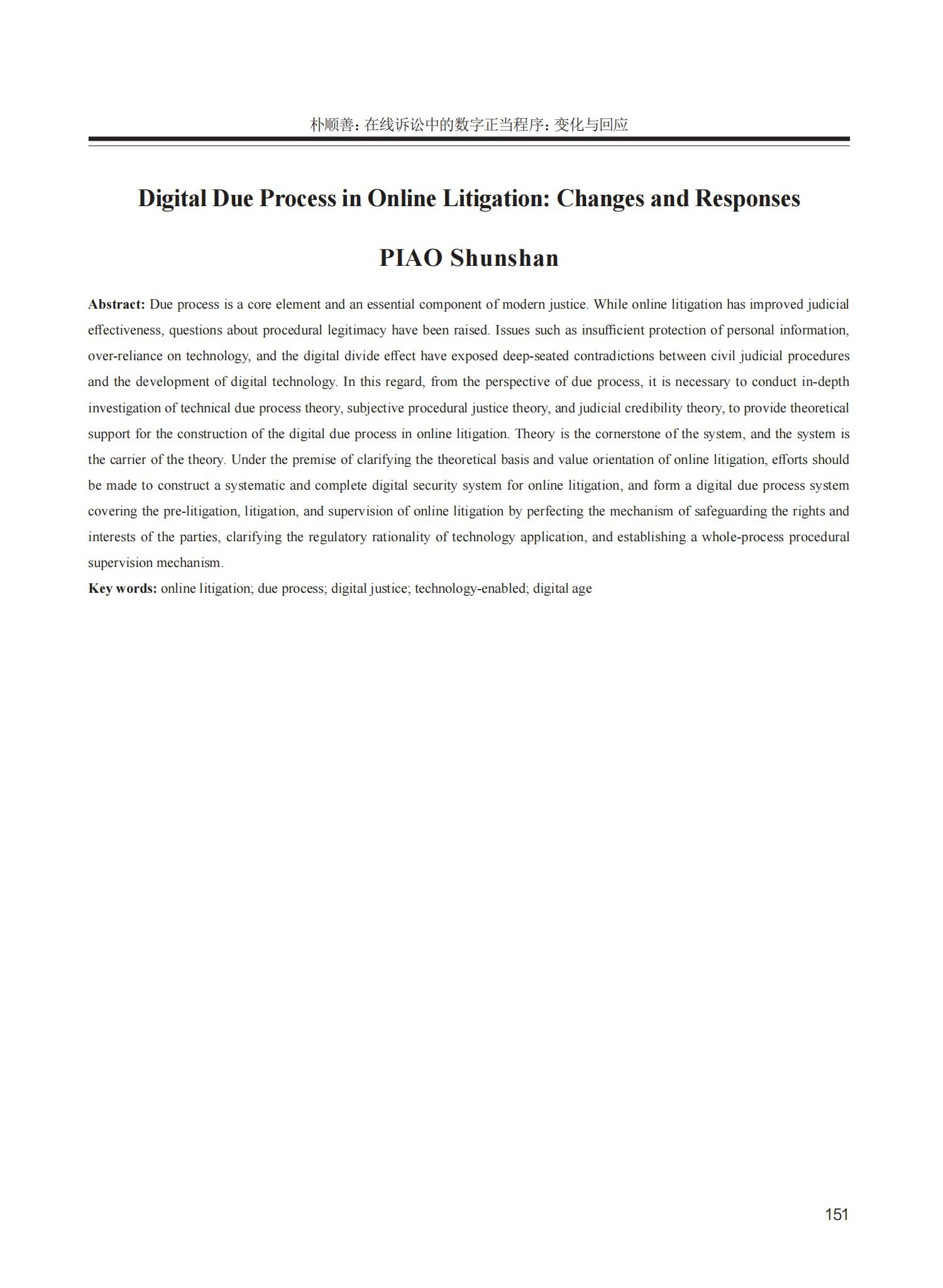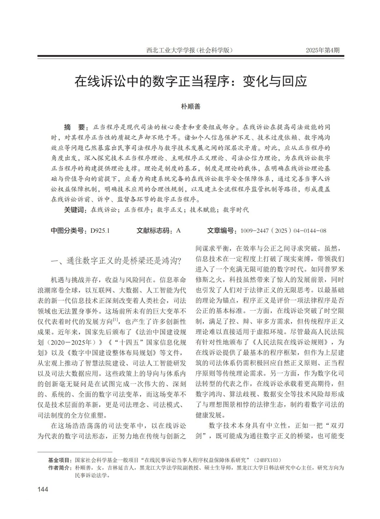我院教师朴顺善发表论文《在线诉讼中的数字正当程序:变化与回应》于《西北工业大学学报社会科学版》2025年第4期。