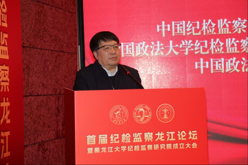 12月21日,首届纪检监察龙江论坛暨黑龙江大学纪检监察研究院成立大会在哈尔滨举办。本次论坛由黑龙江大学主办,黑龙江大学法学院、黑龙江大学纪检监察研究院、黑龙江省纪检监察协会承办。论坛以“新时代纪检监察工作高质量发展的理论与实践”为主题,聚焦纪检监察学科建设与实务发展前沿问题,汇聚各方智慧,共谋发展。来自全国高校科研机构、纪检监察实务部门的专家学者100余位代表出席本次论坛。