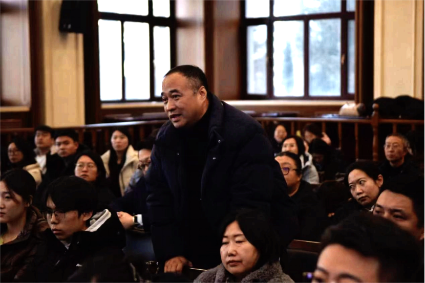 陈晨副教授阐述法学理论与实践的矛盾性与同一性,他指出,法学作为人文社科需通过实践检验理论,强调理论应保持超越性以发挥反思引导功能,实践需理论指导避免陷入盲目个案循环,二者在法治框架内互融共生共同推动法治进步。